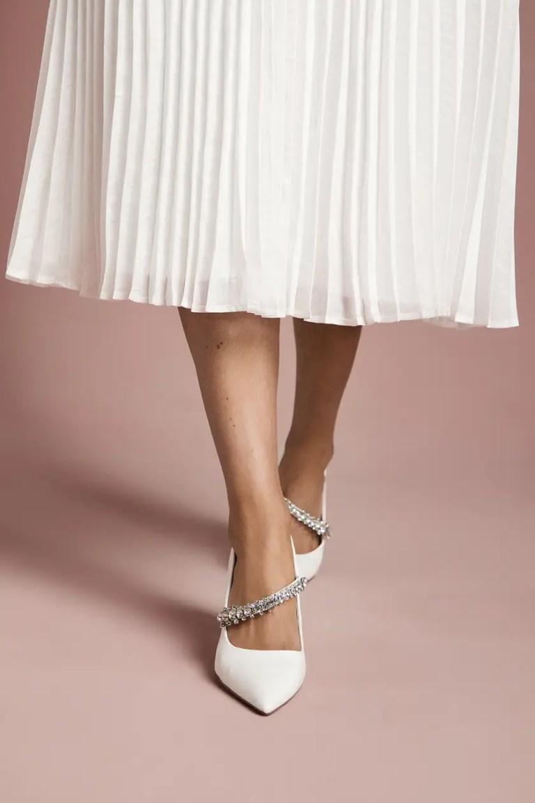 Textured ivory courts that rework the traditional bridal heel. A confident choice beyond plain satin.